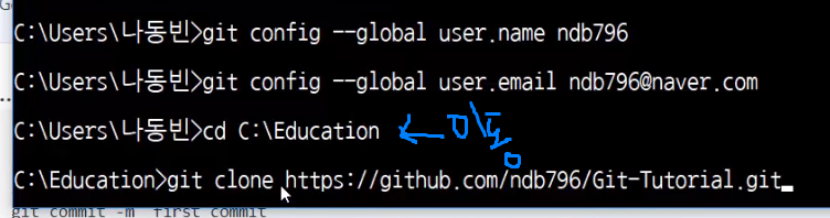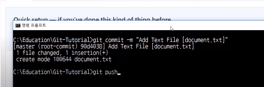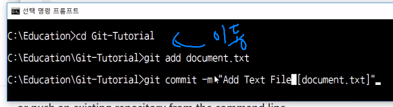 => cmd에서 Git-Tutorial로 이동한 뒤 git add로 추가해주고 commit 진행