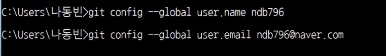 git config --global (하나의 프로젝트가 아니라 우리 컴퓨터 전체에서 동일한 옵션 활용) user.name 깃허브 계정