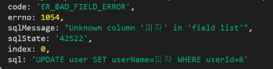 계속 ER_BAD_FIELD_ERROR 에러가 났다.