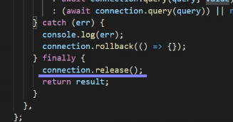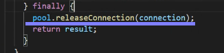 graphql이랑 mysql을 연동하는 코드 중에서 releaseConnection으로 connectionpool 연결을 끊어주는 부분에서